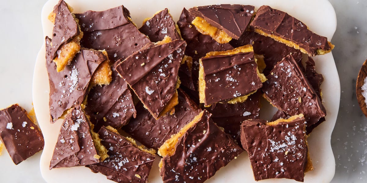 Transfer the baking sheet to the oven and bake until the toffee mixture is bubbling all over and has reached a rich caramel color, which should take 5 to 7 minutes. Science Break, Part 2: Here you’re taking the toffee mixture to something candy makers call the “hard crack” stage (300°). Basically, it’s the point at which the cooled candy will snap when broken. Remove the saltine toffee from the oven too early (before it’s reached that hard crack stage), and you risk the toffee being soft and sticky or slightly chewy. Also, beyond the textural issues, the toffee won’t taste as rich and complex because it’s missing out on some of that additional browning.