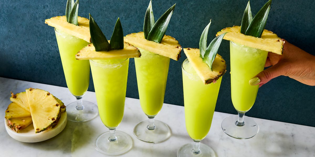 Elf's Top Shelf—a cheeky, holiday-ready cocktail brought back by one mischievous elf who used his PTO to swap snow for sand. This merry green sip mixes Midori, juicy pineapple, tart passionfruit, rich cream of coconut, and zesty lemon, blending tropical warmth with a wink of winter whimsy. With its creamy texture, fruity sparkle, and elf-ear pineapple garnish, it’s like a Christmas vacation in a glass—naughty, nice, and full of holiday cheer. Make it for your holiday party, and be transported to a tropical paradise—even if it’s a winter wonderland outside.